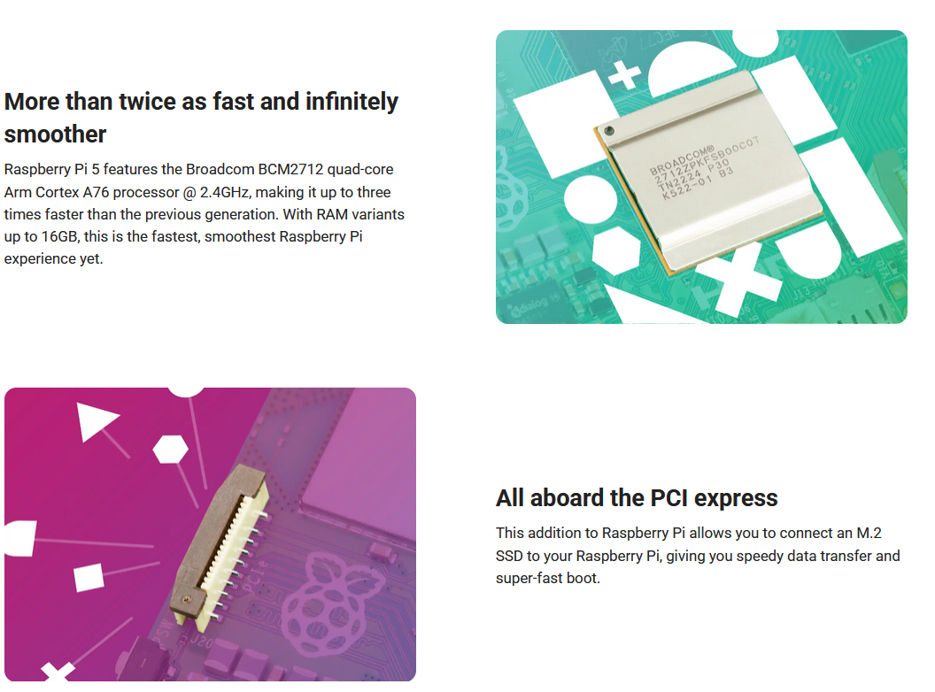 PCIe 2.0 x1 interface for fast peripherals (requires separate M.2 HAT or other adapter)